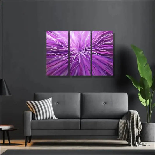 3 Piece Wall Art Titled "Radiation" (Purple Wall Art Set of 3)