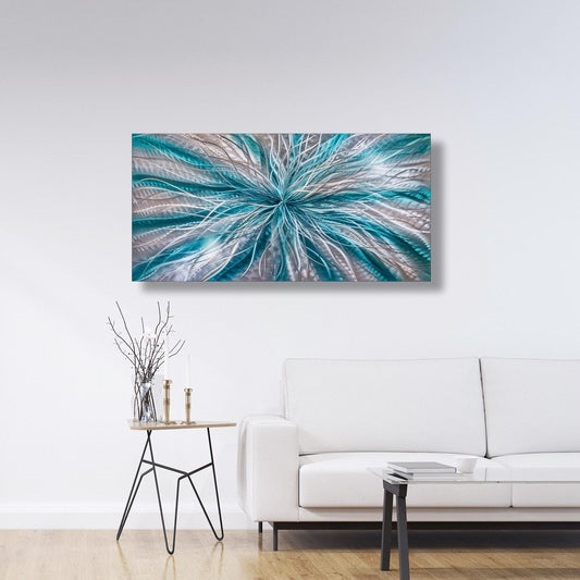 Abstract Teal & Silver Metal Wall Art – Modern Statement – Unique Contemporary Decor