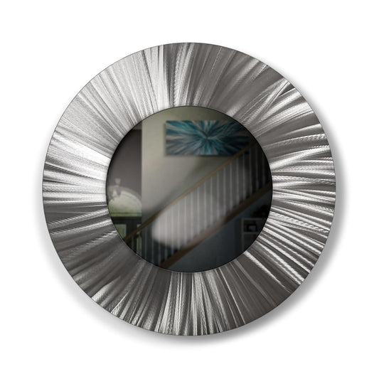 Silver Metal Art Wall Mirror: Modern Home Decor, Handmade in UK