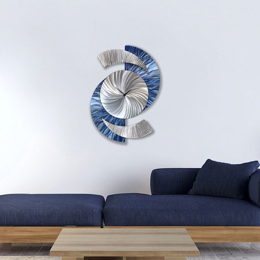 Unique Navy Blue & Silver Metal Wall Clock – Large Modern Wall Sculpture
