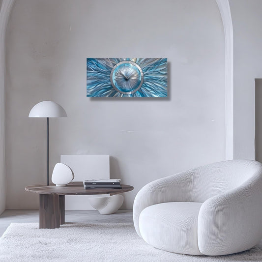 Unique Large Turquoise Clock – 24x12" Modern Blue Wall Sculpture & Metallic Art Decor