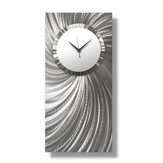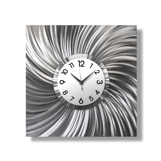 Unique Silver & White Metal Wall Clock – Modern Abstract Art – Wall Sculpture
