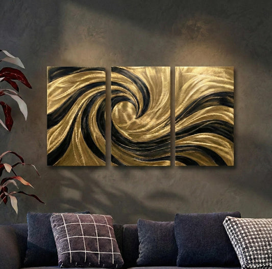 Black & Gold Metal Abstract Wall Art: 3-Panel Modern Sculpture