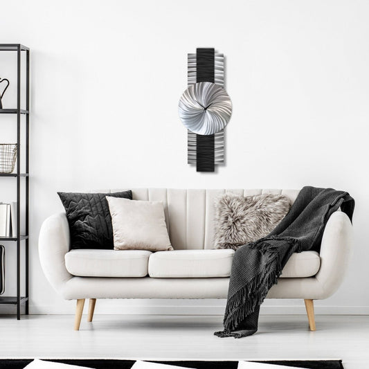 Modern Metal Wall Clock - Abstract Silver Black Design for Office and Kitchen Decor