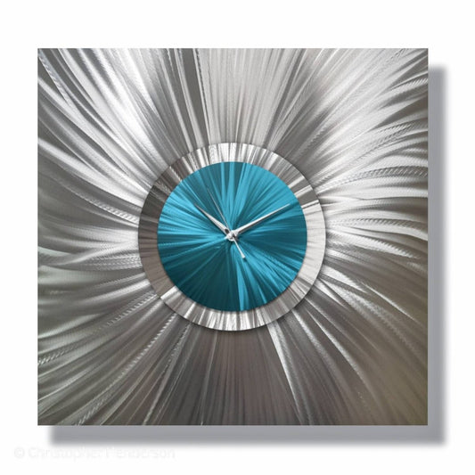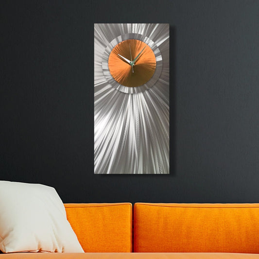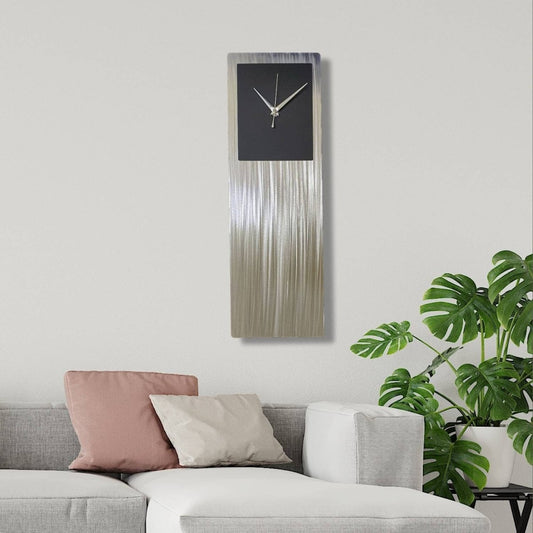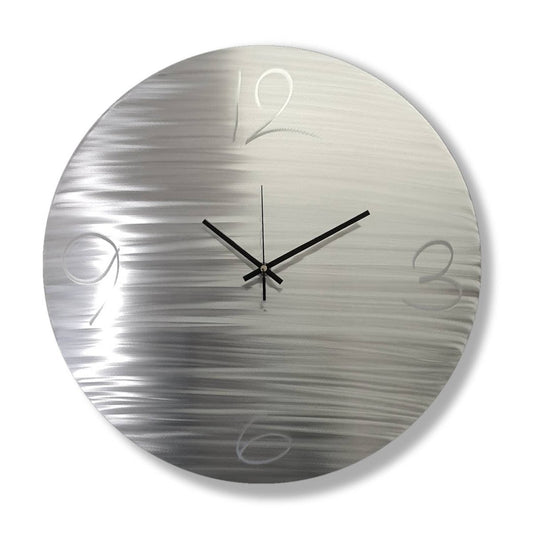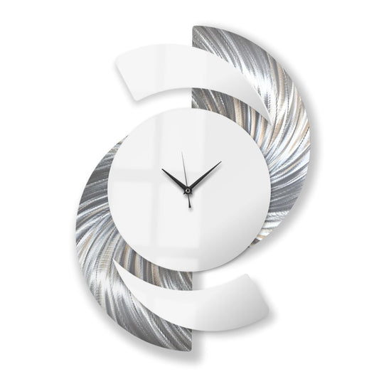 Modern Silver Wall Clock – Large Oversized Abstract Clock & Metal Wall Sculpture