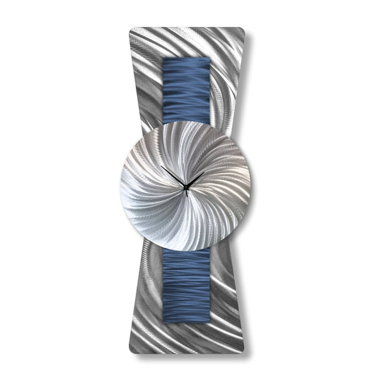 Navy Blue & Silver Wall Clock – Unusual Large Metal Clock – Modern Art