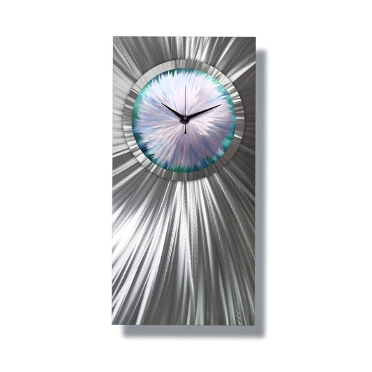 Silver Flower Art Modern Wall Clock - Metal, Silent, Handmade - 12x24"