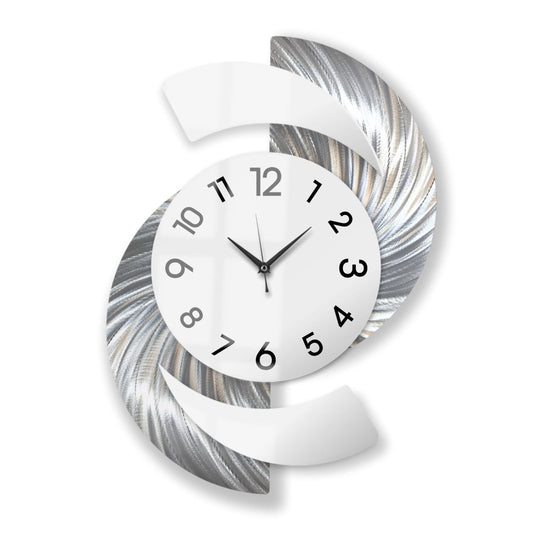 Silver & White Wall Clock - Luxury Abstract Art, Metal Wall Sculpture, Silent Quartz - 18x24"