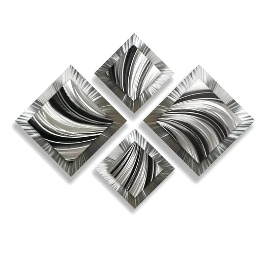 Large Abstract Black and Silver Metal Wall Art Set of 4 for Modern Gallery Decor