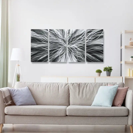 Our black metal wall art collection has a powerful and versatile choice of designs that can transform any space with elegance, sophistication, and dramatic appeal. When merging silver and black you associate luxury, mystery, and strength, making it a popular option for creating a bold statement in interior decor.