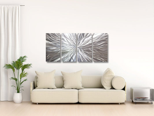 Luxury Silver Metal Wall Art Sculpture - Gallery Art Set of 4 for Modern Decor