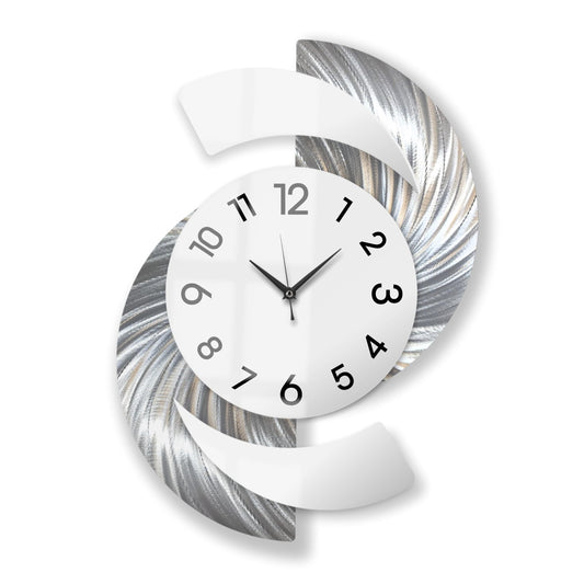 Large Modern Silver and White Wall Clock Titled Elliptical
