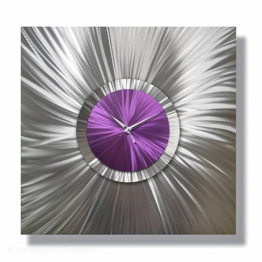 Large Purple Silver Modern Wall Clock - Unique Metal Abstract Art Sculpture for Home Decor