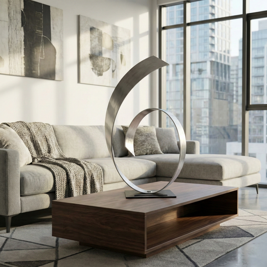 Silver Metal Sculpture:Modern Decor Titled Equilibrium