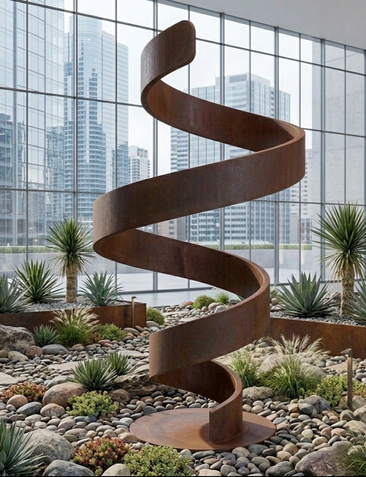 Rustic Metal Sculpture: Patina Artwork Titled Helixium