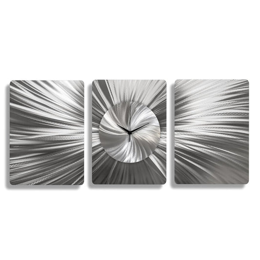 Handmade 3-Piece Modern Silver Wall Clock | Unique Etched Alloy Art