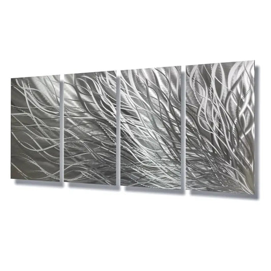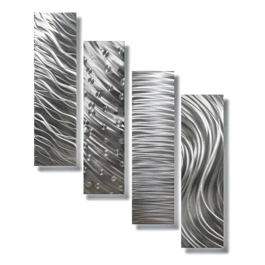 Large Silver Wall Art Titled "Silver Spiral" (Set of 4)