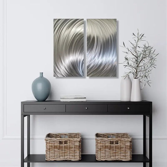 From minimalist silver wall paintings to dramatic geometric silver wall sculptures, this collection is a wide-ranging selection. Whether you want silver metal wall art to enhance a contemporary, industrial, or monochrome look, these statement pieces bring elegance and visual presence.