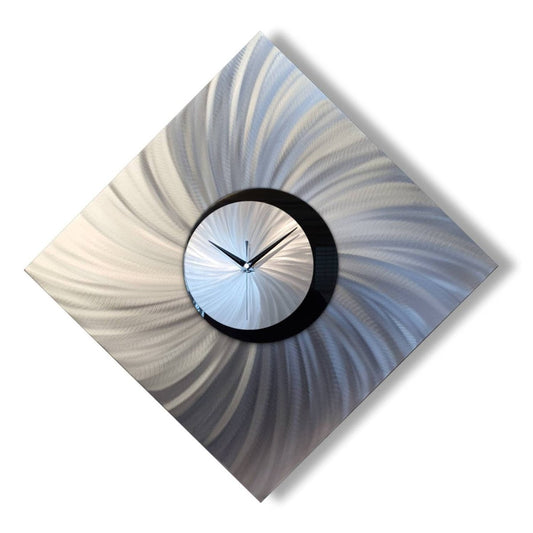 Black Wall Clock - Silver - Modern Abstract Art - 45x60cm