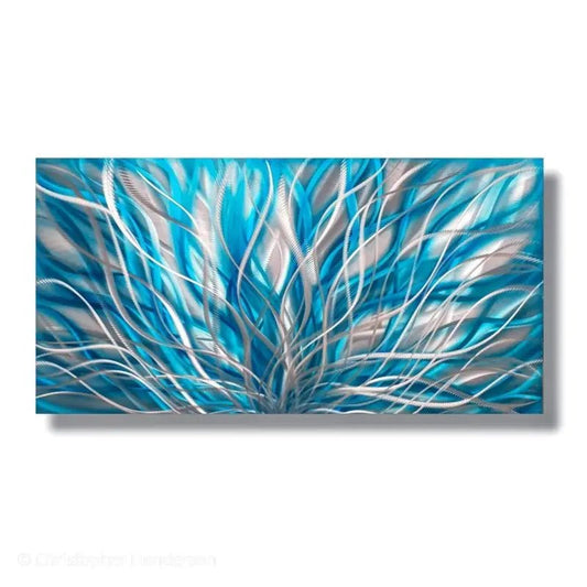 Bring the calming energy of ocean skies and crystal waters into your home with our turquoise metal wall art collection. Each piece blends abstract design with the shimmering depth of polished aluminium.
