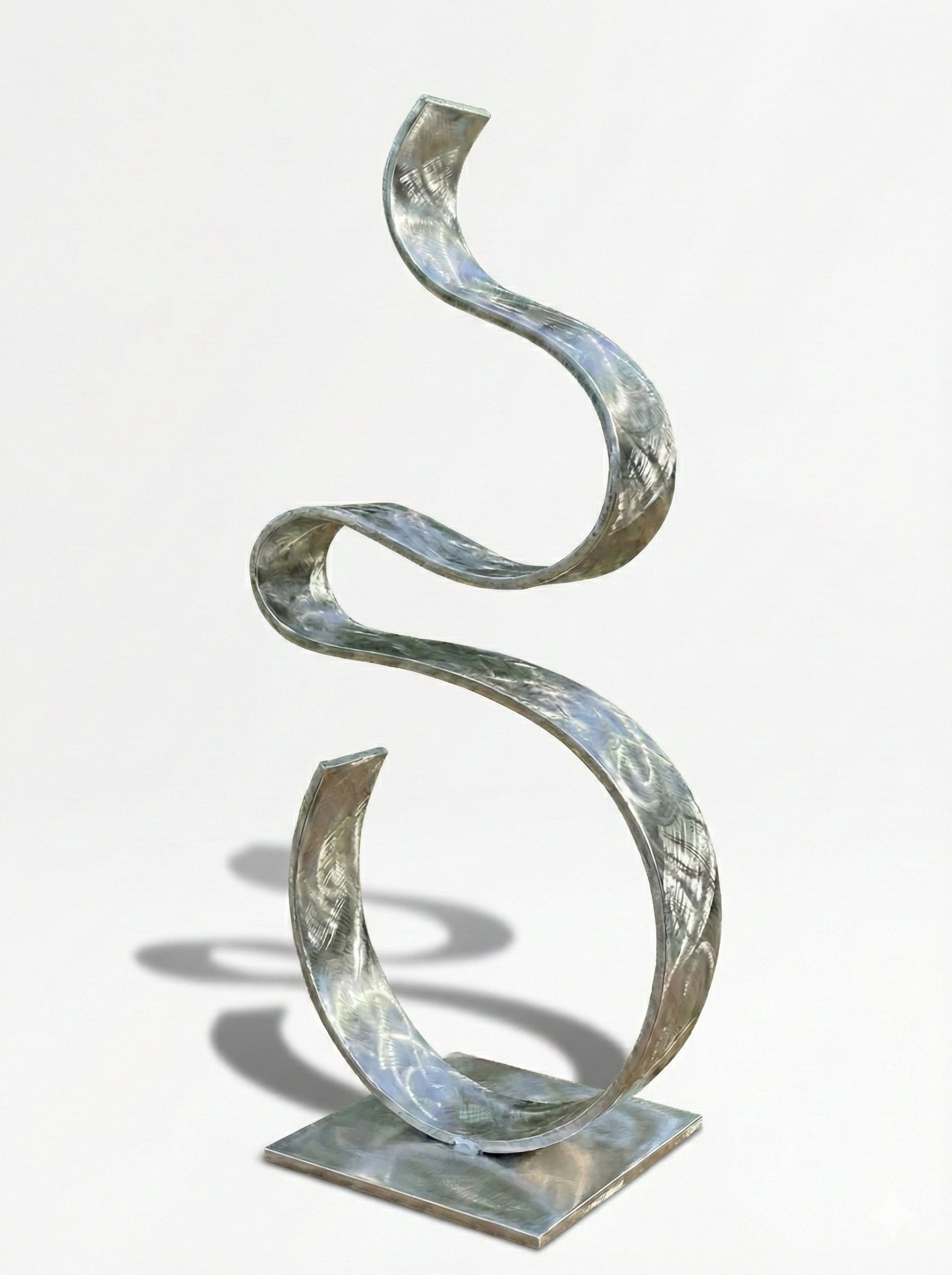 Add a striking sense of fluid motion to your home or garden with this contemporary metal ribbon sculpture. Handcrafted to create the illusion of weightlessness, the continuous metal arc sweeps gracefully upward in an elegant S-curve.