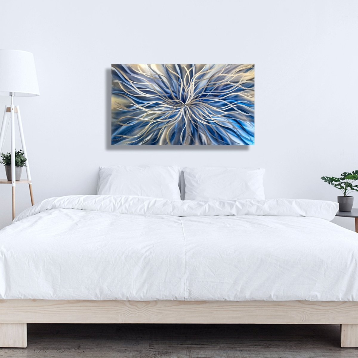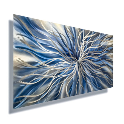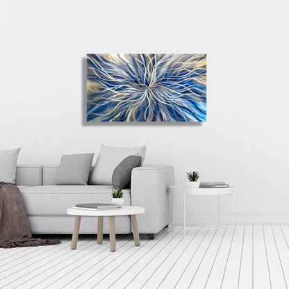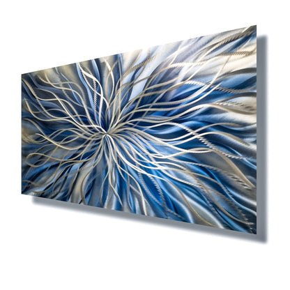 Navy Blue & Silver Metal Wall Art – Abstract Wall Sculpture & Modern Painting