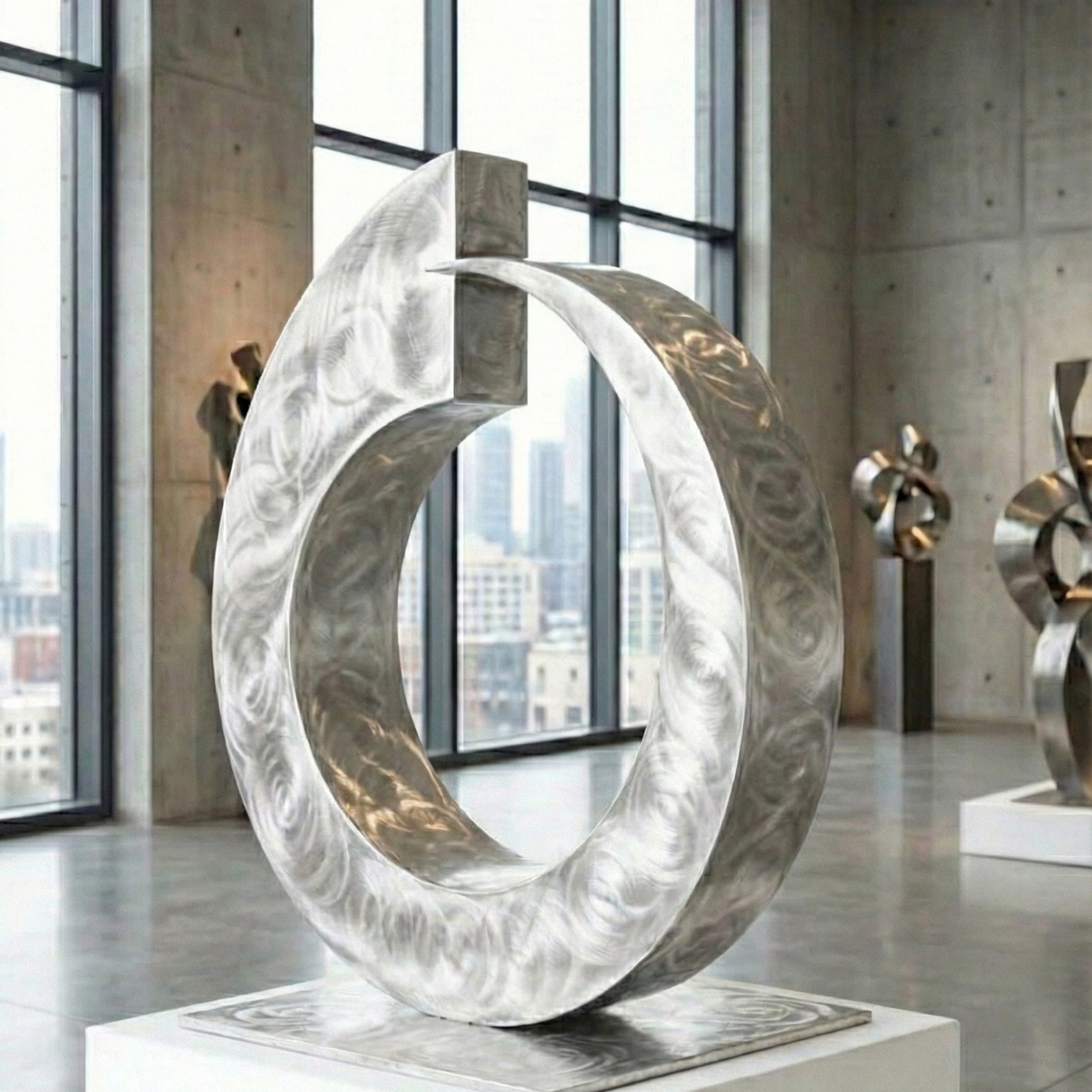 Make a bold architectural statement with this stunning Modern Abstract Metal Loop Sculpture. Designed to capture the interplay between solid form and empty space, this piece features a sweeping, continuous loop that dramatically frames a perfectly proportioned central void. Whether anchoring a corporate lobby, a luxury living space, or a contemporary garden, its dynamic presence shifts and evolves from every viewing angle.